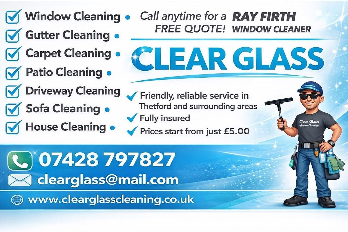 Welcome to Clear Glass Cleaning Limited, your trusted partner for a wide range of professional cleaning services in Thetford, Norfolk. With over 15 years of experience, we're dedicated to delivering spotless results and exceptional customer service. Discover how we can make your home or business shine.